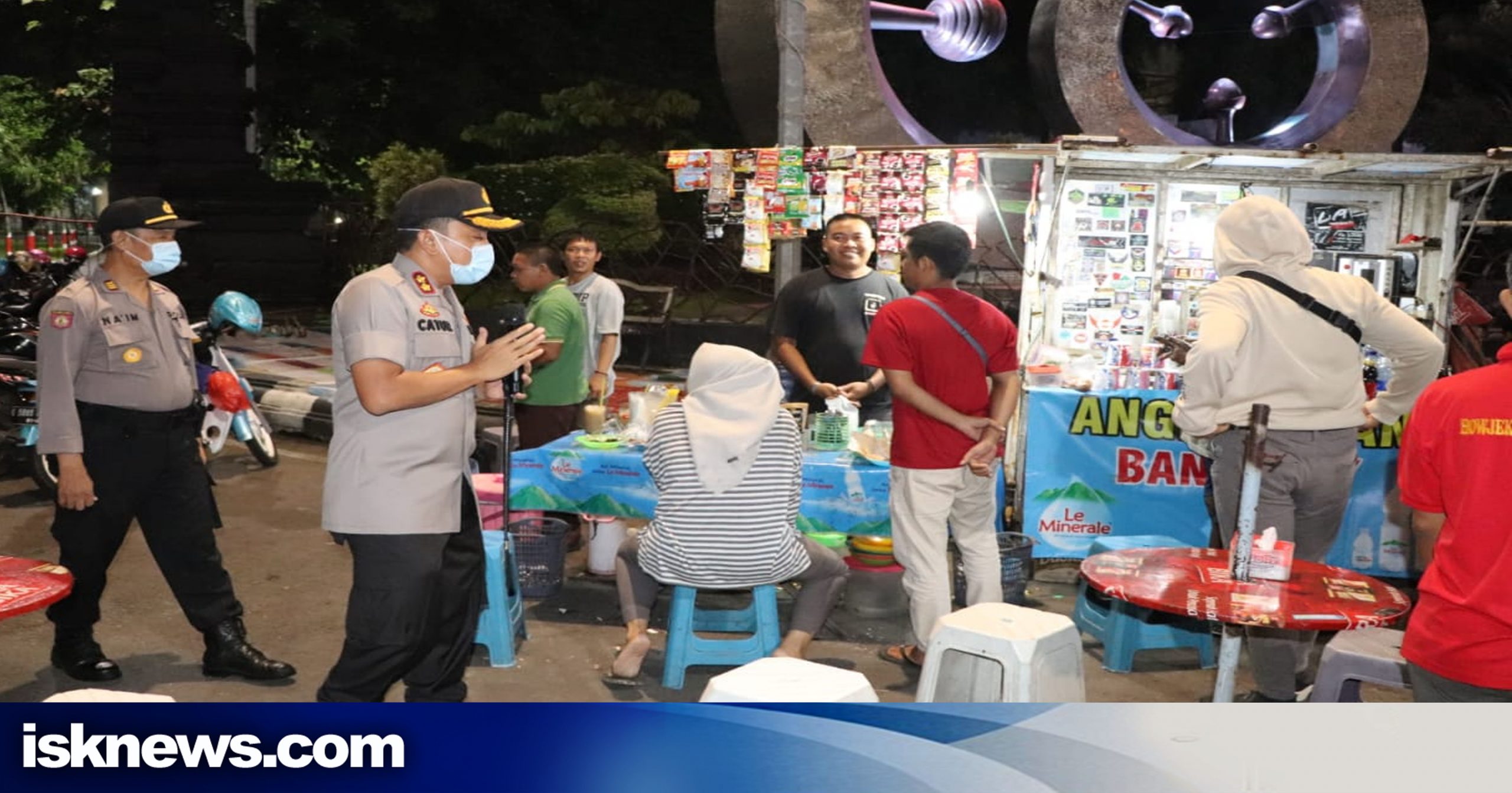 “Kami minta untuk mulai sekarang mengisolasi diri dan tinggal dirumah,” pinta Kapolres saat meminta kepada anak muda  yang sedang makan di angkringan sekitar taman bojana untuk kembali ke rumah.