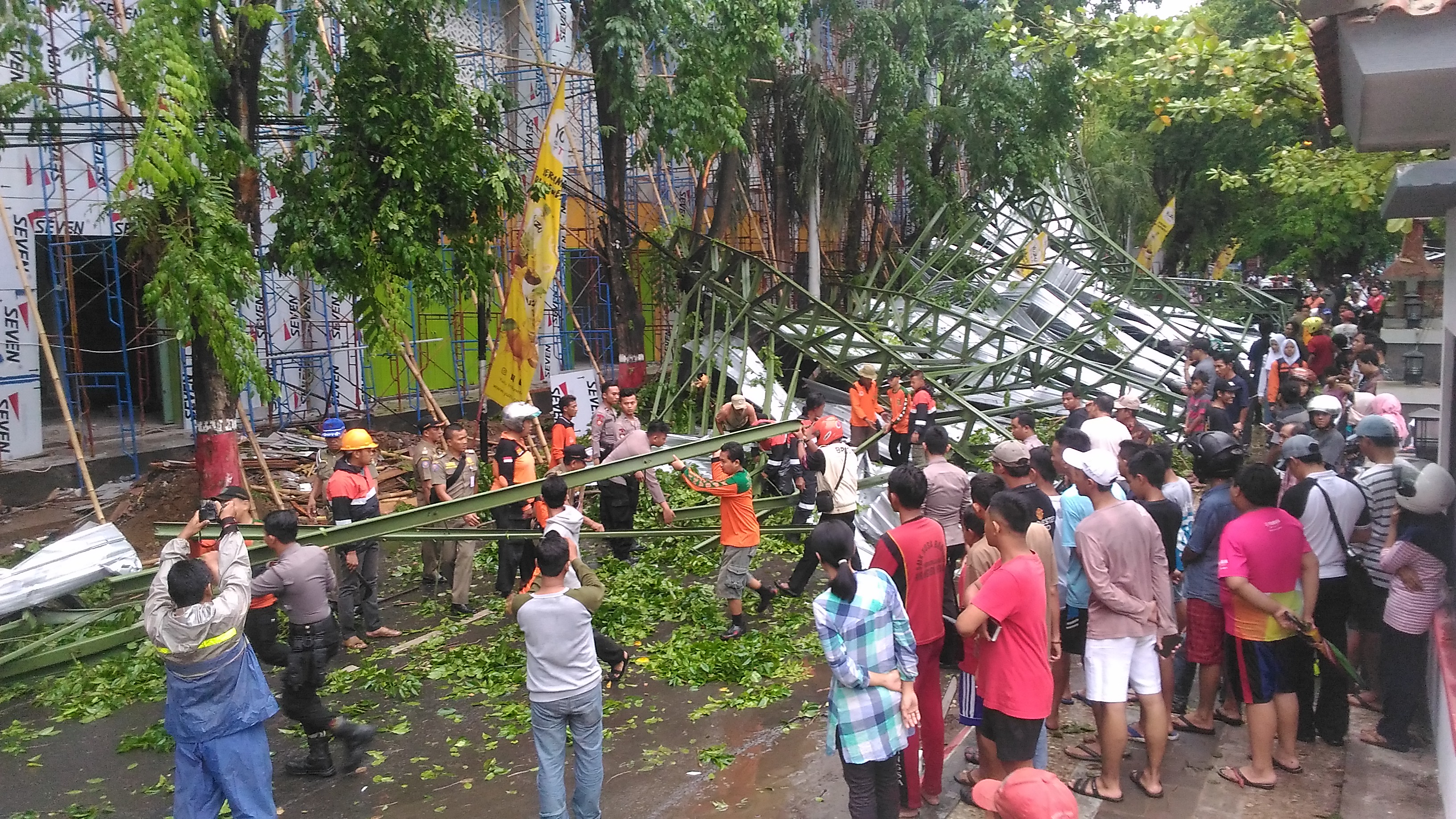 Saat kejadian para pekerja masih berada di lokasi, bekerja merampungkan pengerjaan tribun utara yang sudah hampir selesai.