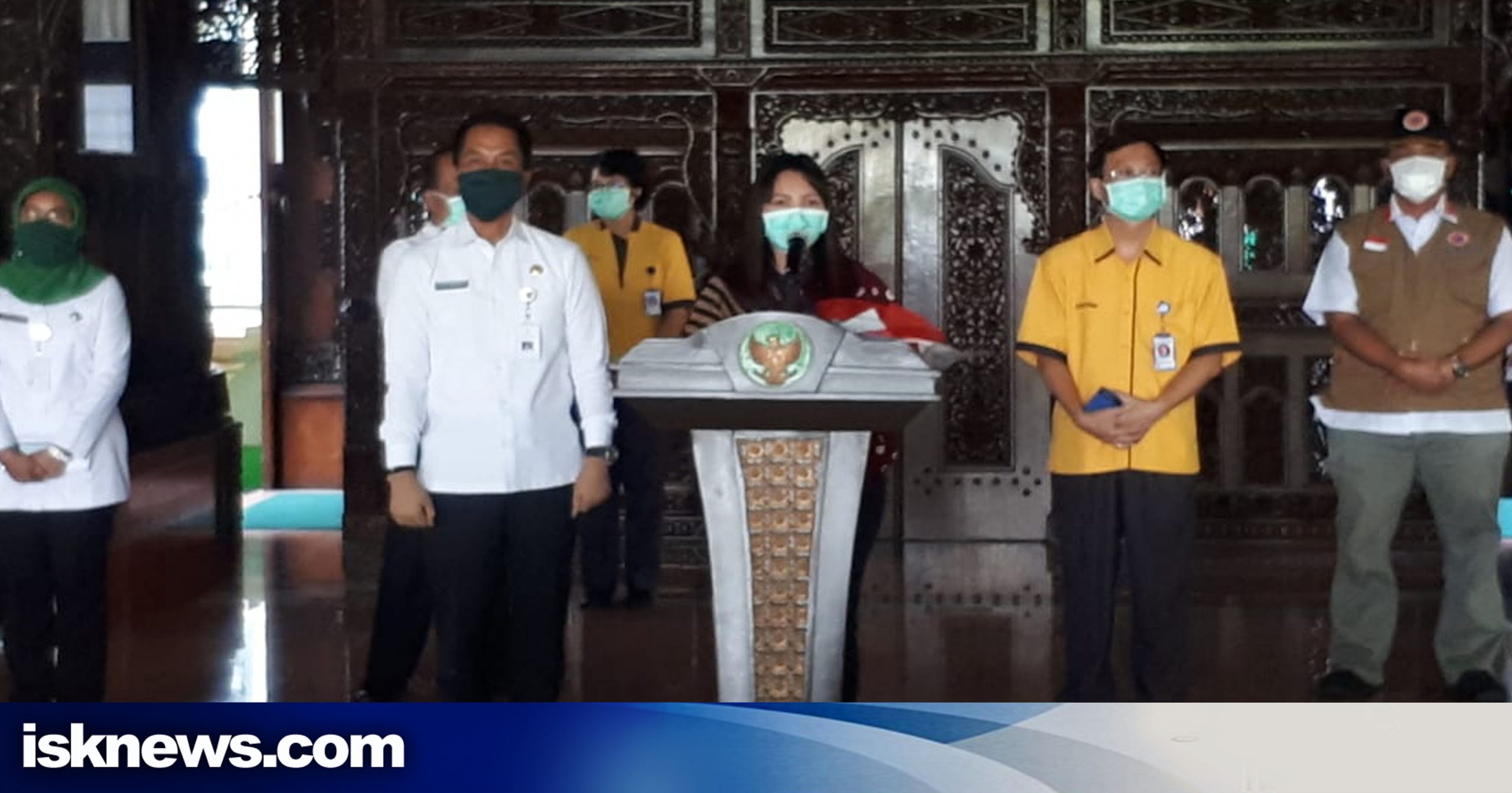 Di Pendopo Kabupaten Kudus, Sukarsih memberikan testimoni saat gelar jumpa awak media. Didampingi Plt Bupati Kudus HM Hartopo, Kepala Dinas Kominfo, Direktur RS Mardi Rahayu dr. Pujianto, Kepala DKK, Juru bicara Gugus Tugas Pencegahan Covid-19 dan Kalakhar BPBD Kudus.