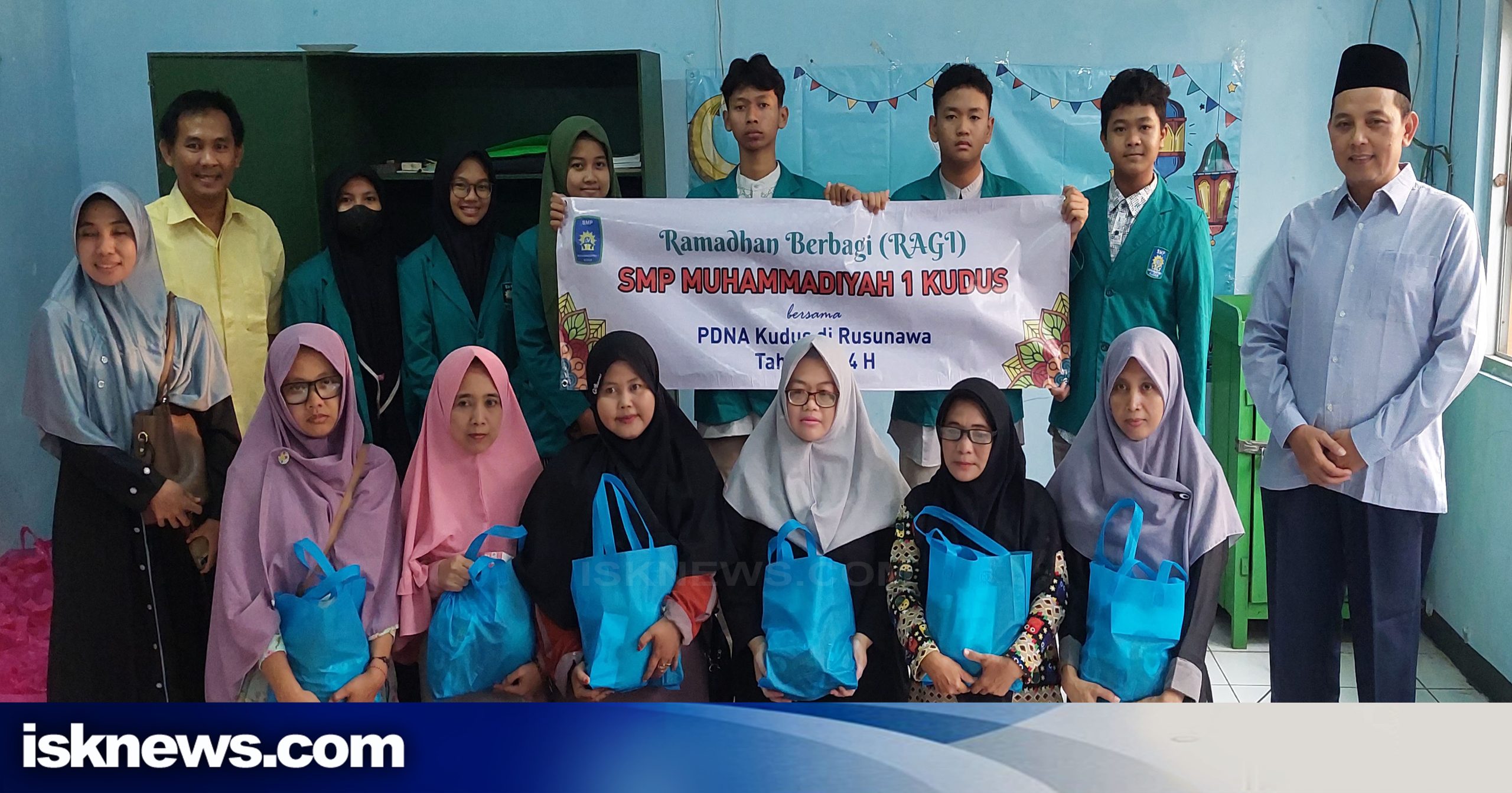 Ada sekitar 90 keluarga yang akan mendapatkan bingkisan sembako dari SMP 1 Muhammadiyah Kudus. Bingkisan tersebut diadakan melalui donasi siswa serta guru yang ada di sekolah setempat.