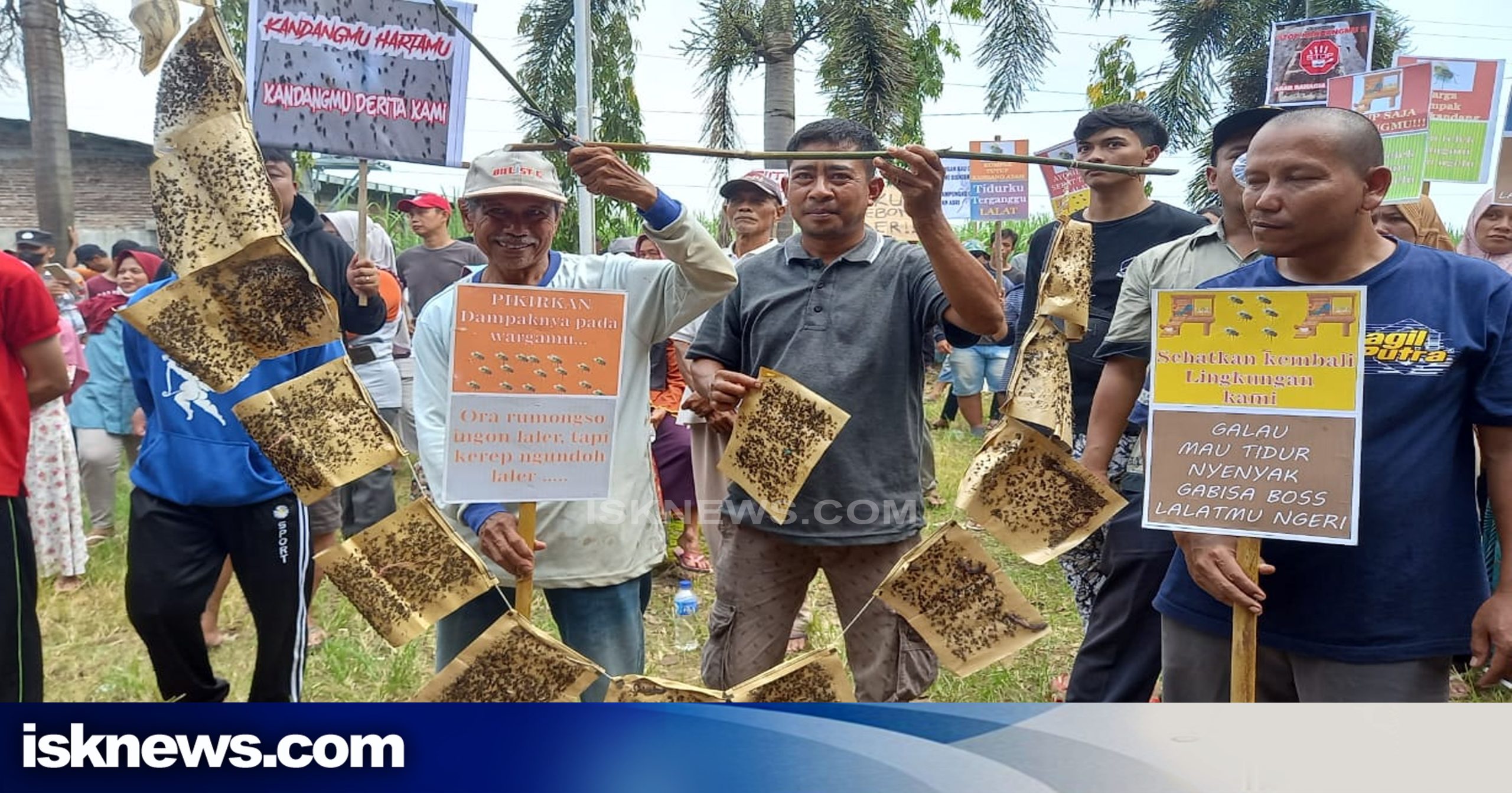 Sejumlah poster yang dibawa oleh warga nampak bertuliskan ‘kandang hartamu kandang derita kami’, ‘Ora rumongso ingon laler, tapi kerep ngundoh laler…pikirkan dampaknya pada wargamu, ‘telek pitekmu nyemplung kopi ku, ‘tutup saja kandangmu sehatkan kembali lingkungan kami’.