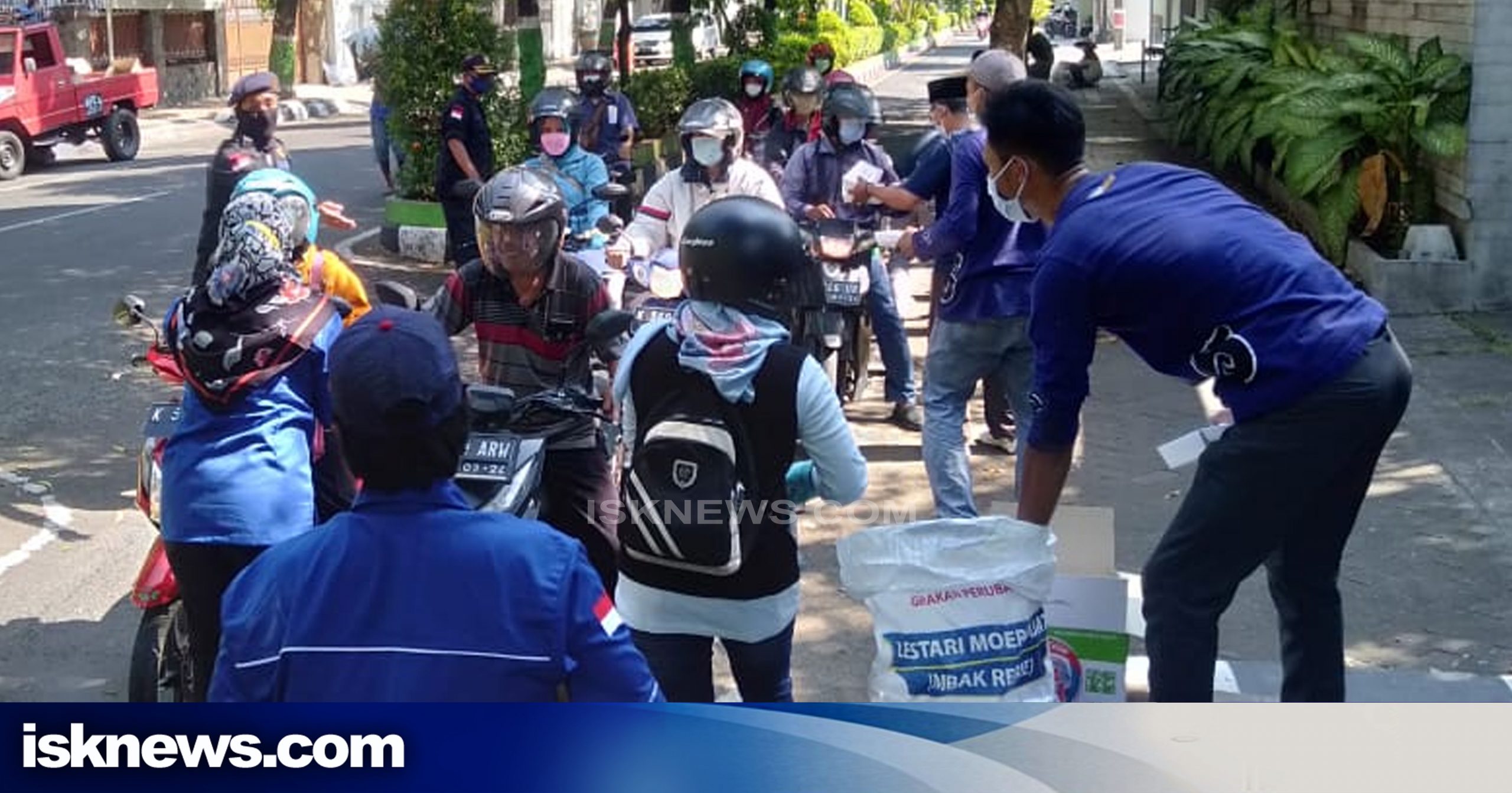 Kudus, isknews.com – Sejumlah aktivis dari DPD Gemuruh (Gerakan Massa Buruh) yang merupakan underbow dari Partai NasDem bersama relawan Sahabat Lestari Kabupaten Kudus membagikan 500 nasi kotak dan minuman, serta paket peralatan protokol kesehatan (prokes) bagi para buruh pabrik rokok di ruas jalur lambat jalan dr Loekmonohadi Panjunan, Kudus, Kamis (30/09/2021) siang.