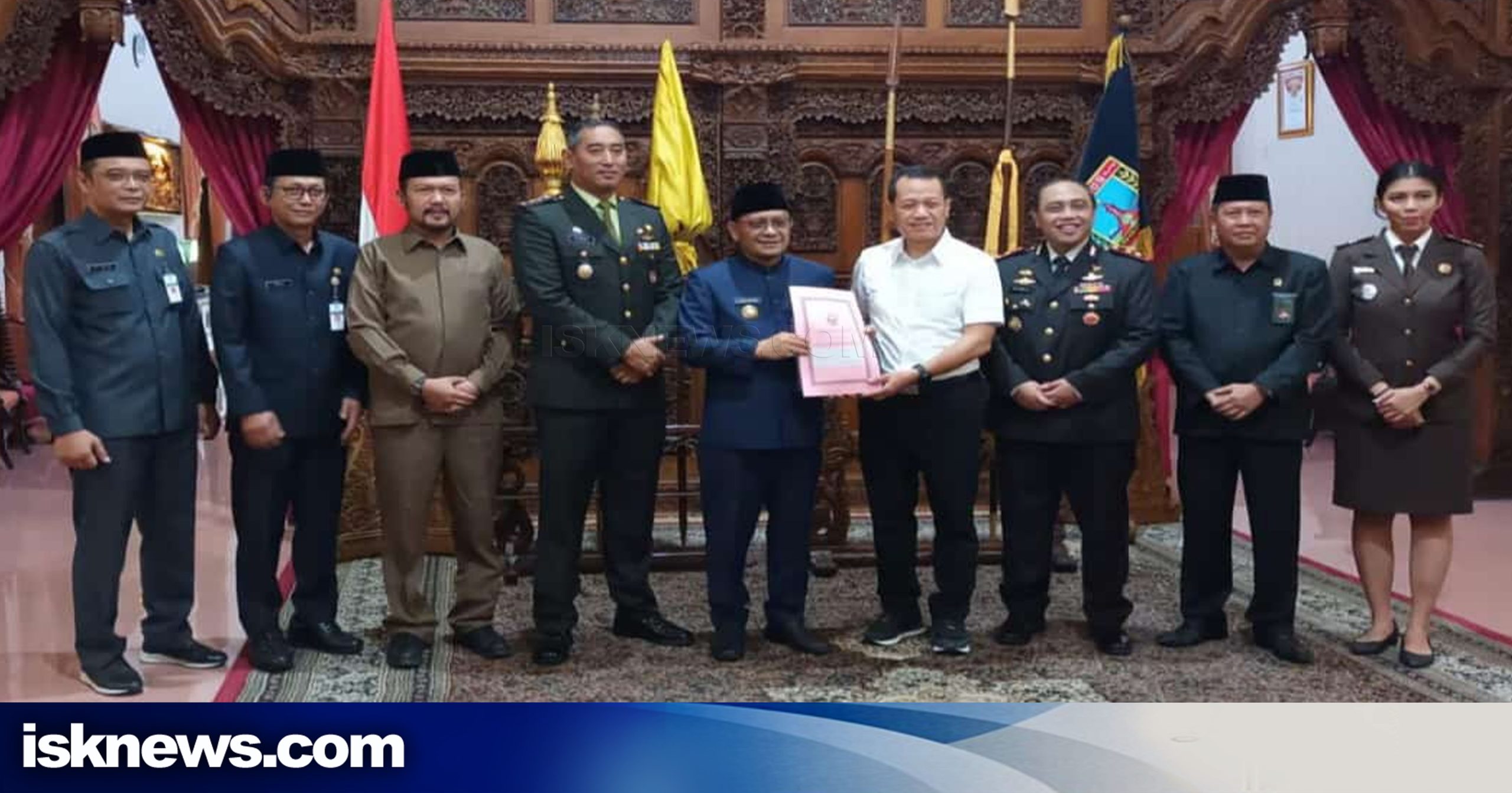 Kudus, isknews.com – Bakal Calon Bupati Kudus, Sam’ani Intakhoris hari ini menerima Surat Keputusan (SK) Pensiun Atas Permintaan Sendiri (APS) sebagai Pegawai Negeri Sipil (PNS) yang diserahkan oleh Penjabat (Pj) Bupati Kudus Muhammad Hasan Chabibie di Pringgitan Pendapa Kabupaten Kudus, Sabtu (01/06/2024).