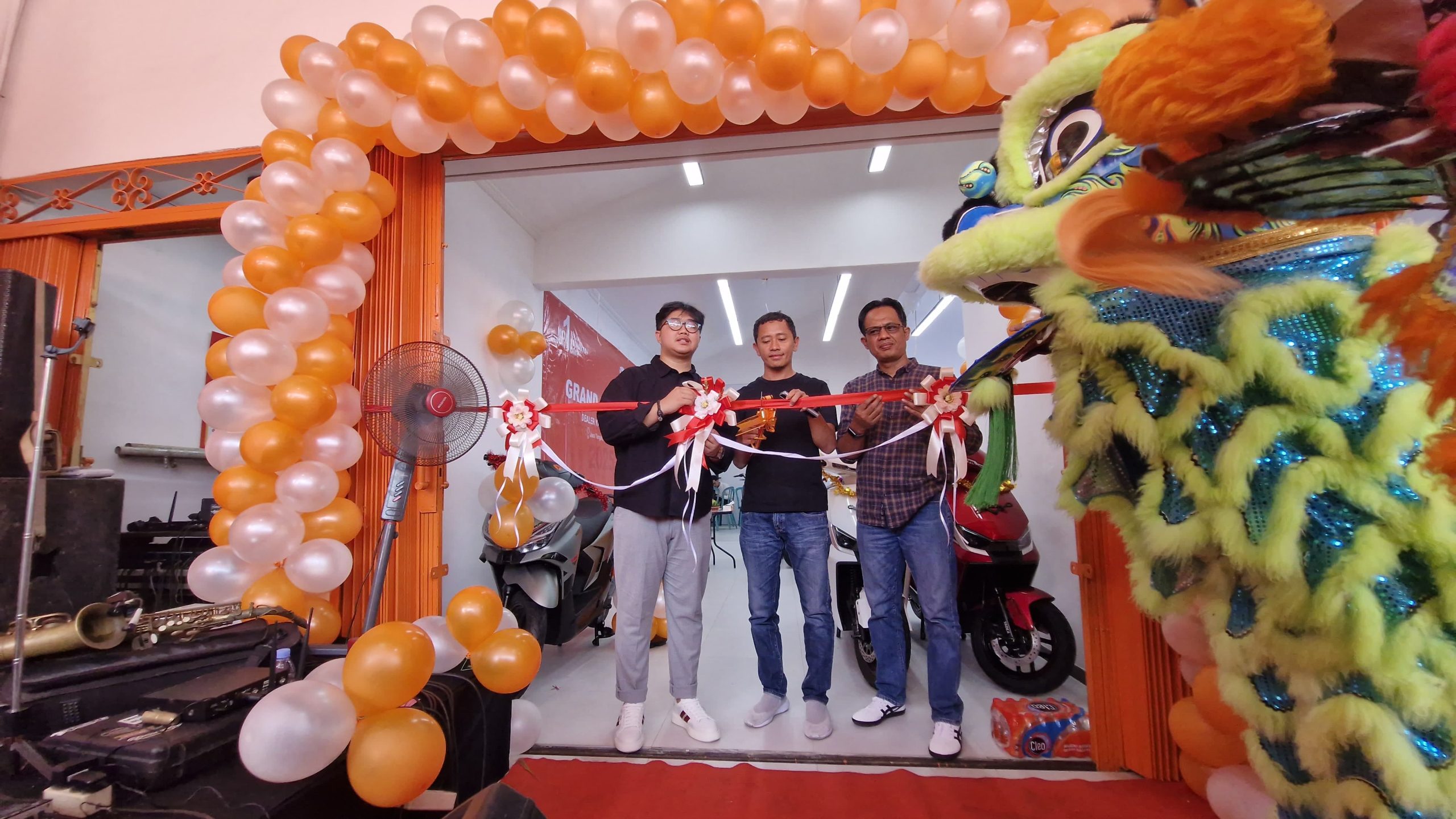 Grand launching disambut meriah oleh ratusan pengunjung. Atraksi barongsai, live musik, test ride motor listrik, lucky draw, hingga promo potongan harga jutaan rupiah menambah semarak acara.