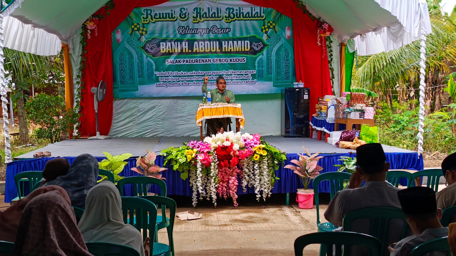 Kudus, isknews.com – Ratusan anggota keluarga besar Bani H. Abdul Hamid menggelar kegiatan halal bihalal di Desa Padurenan, Kecamatan Gebog, Kudus, pada Rabu pagi (25/3/2026). Acara tahunan ini menjadi ajang mempererat tali silaturahmi antar keluarga lintas generasi.