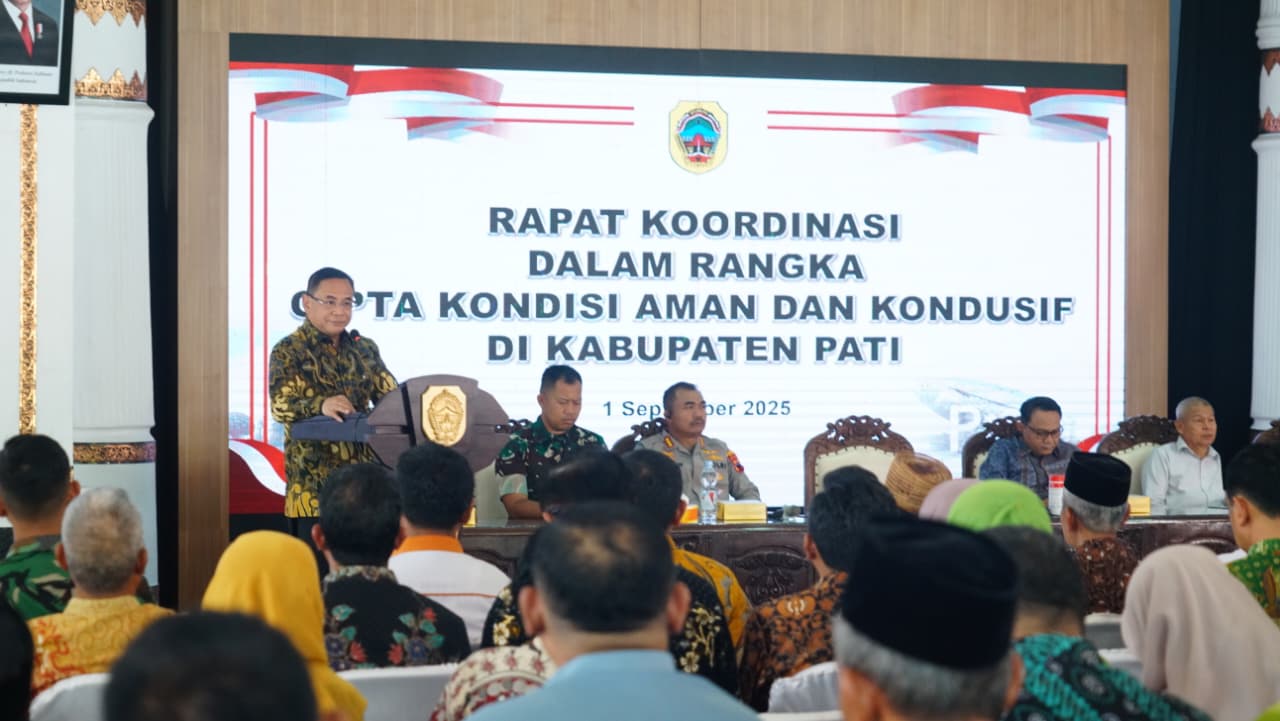 Pati, isknews.com – Pemerintah Kabupaten Pati menggelar Rapat Koordinasi (Rakor) lintas sektor untuk memperkuat sinergi dalam menjaga kondisi aman dan kondusif di wilayahnya, Senin (1/9/2025).