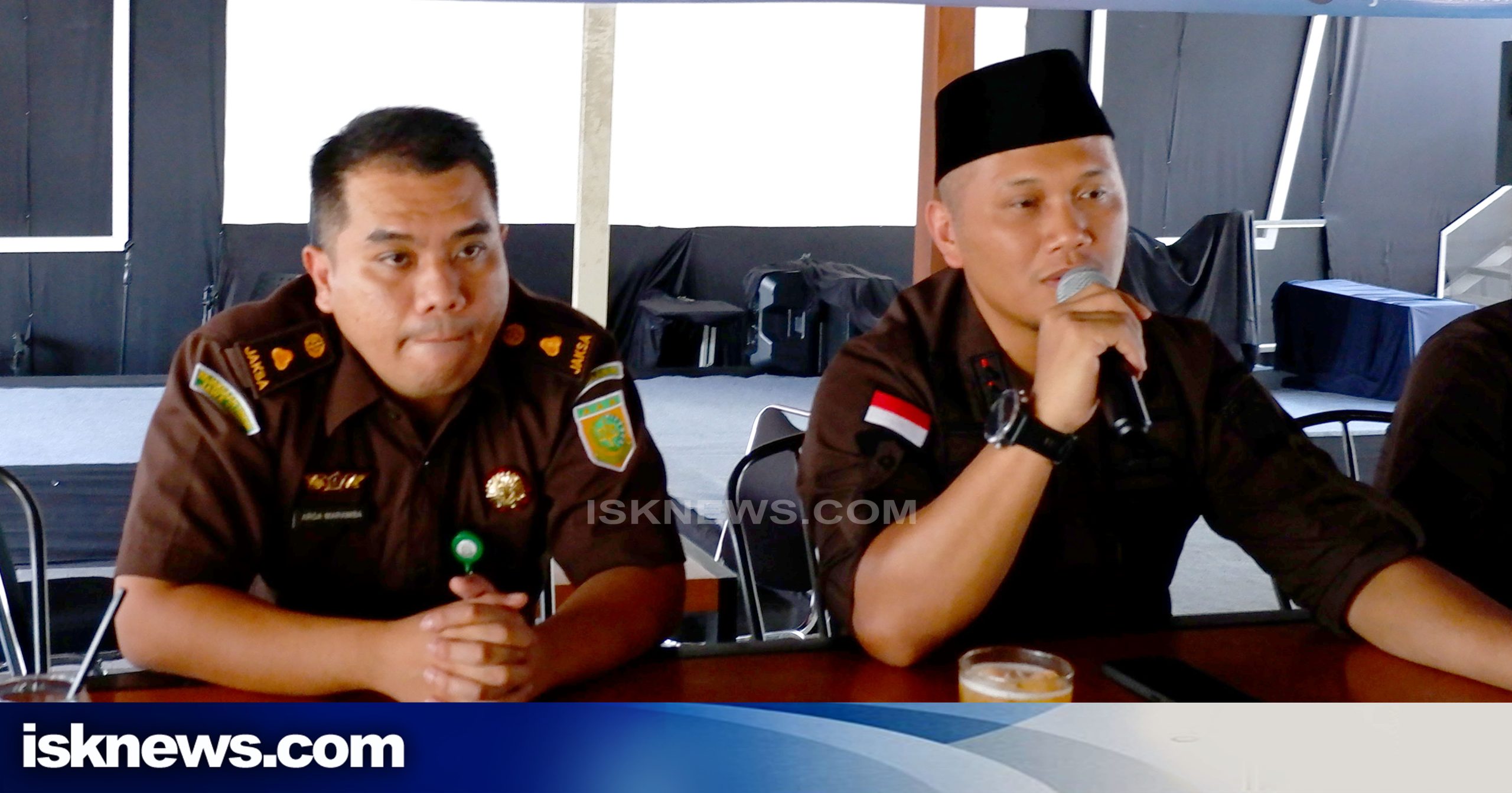 Kepala Kejari Kudus, Henriyadi W Putro (kanan) dan Kasi Intel Arga Maramba saat jumpa awak media PWI dan IJTI beberapa waktu lalu (Foto: YM)