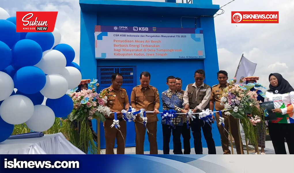 Kudus, isknews.com – Kolaborasi antara Institut Teknologi Bandung (ITB) dan KSB Indonesia diwujudkan melalui peresmian Program Air Minum Desa (Pamdes) berbasis energi terbarukan di Desa Tumpangkrasak, Kabupaten Kudus. Program tersebut diresmikan langsung oleh Bupati Kudus Sam’ani Intakoris, Senin (22/12/2025), sebagai upaya memperluas akses air bersih yang berkelanjutan bagi masyarakat.