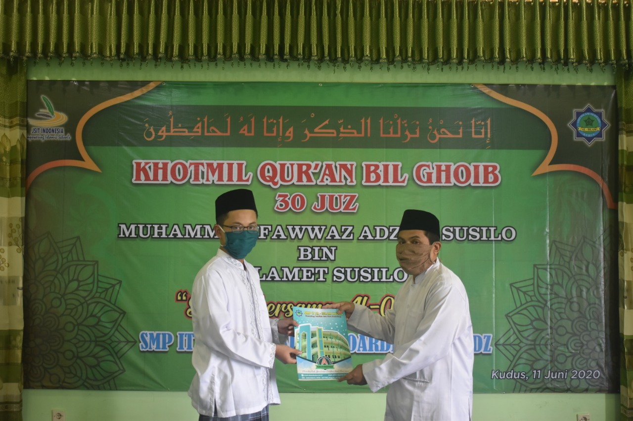 Kudus, isknews.com – Prestasi membanggakan ditorehkan SMP IT Al-Islam Kudus. Di tengah pandemi Virus Corona yang memaksa siswa harus belajar di rumah, tidak membuat siswa-siswi SMP IT Al-Islam Kudus patah semangat. Hal ini dibuktikan dengan diselesaikannya hafalan 30 Juz Al Qur’an oleh salah satu siswanya yang bernama Muhammad Fawwas Adzimi Susilo asal Mayong Jepara.