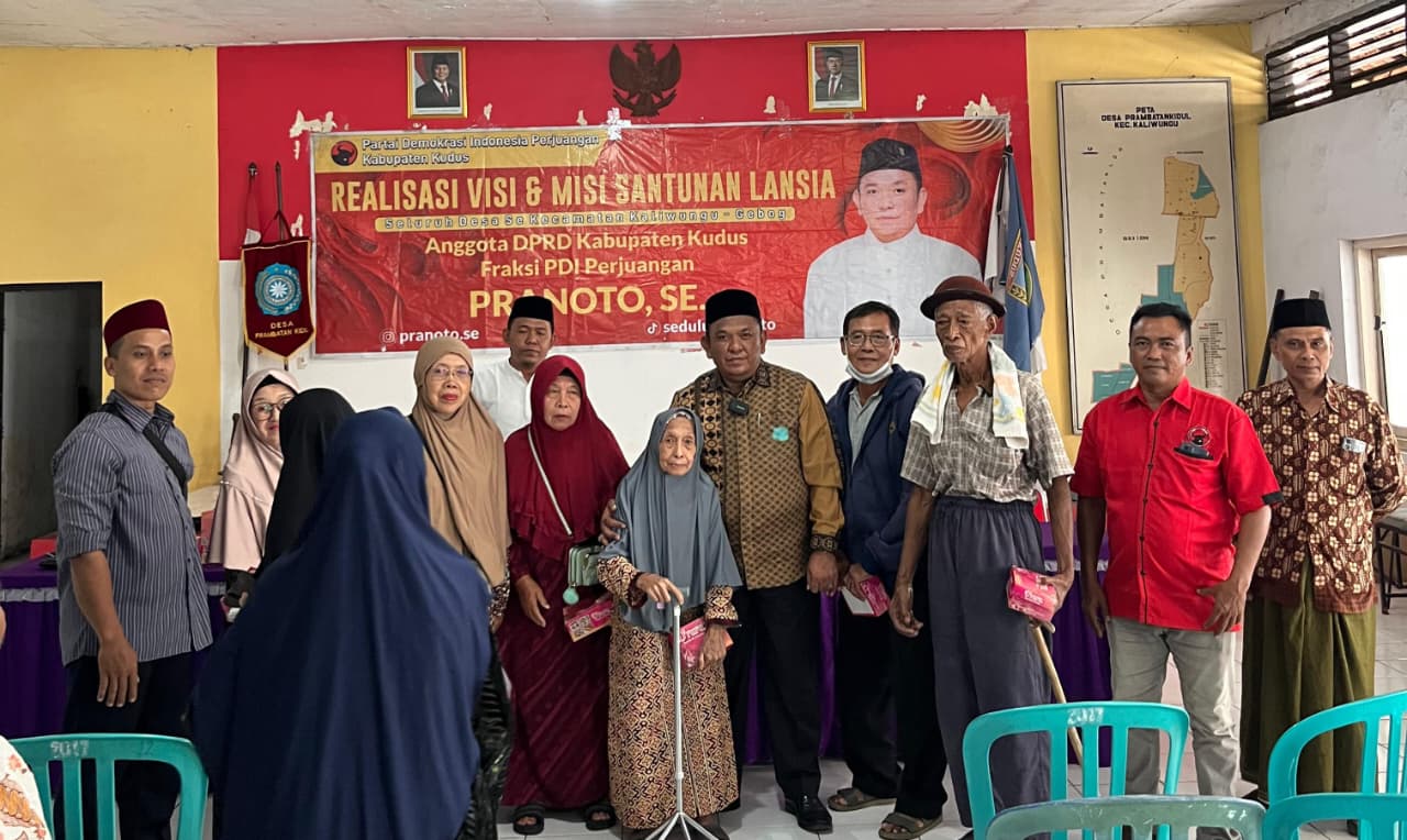Kudus, isknews.com – Anggota DPRD Kudus dari Fraksi PDI Perjuangan, Pranoto, menggelar kegiatan sosialisasi visi dan misi sekaligus memberikan santunan kepada para lanjut usia (lansia) di Balai Desa Prambatan Kidul, Kecamatan Kaliwungu, Kudus, Rabu (17/9).