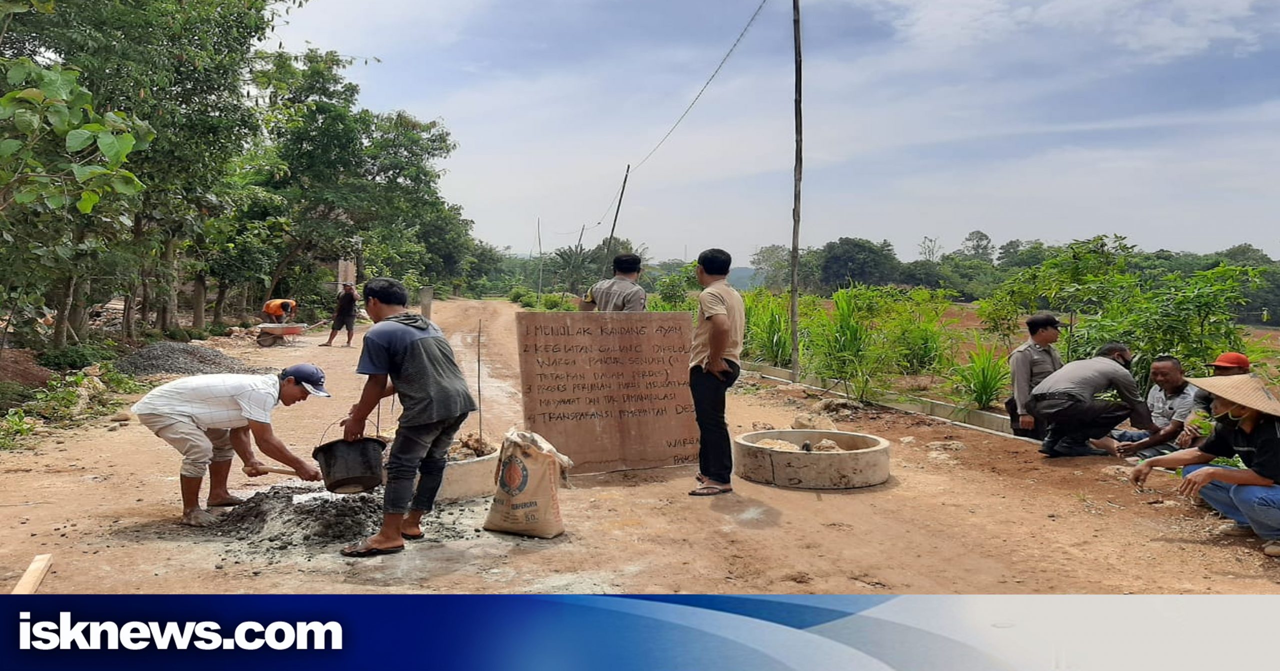Warga memblokade akses menuju lokasi penambangan dengan mengecor di beberapa titik ruas jalan serta memasang papan bertuliskan penolakan warga terhadap aktivitas penambangan tersebut pada Jumat (9/10/2020).