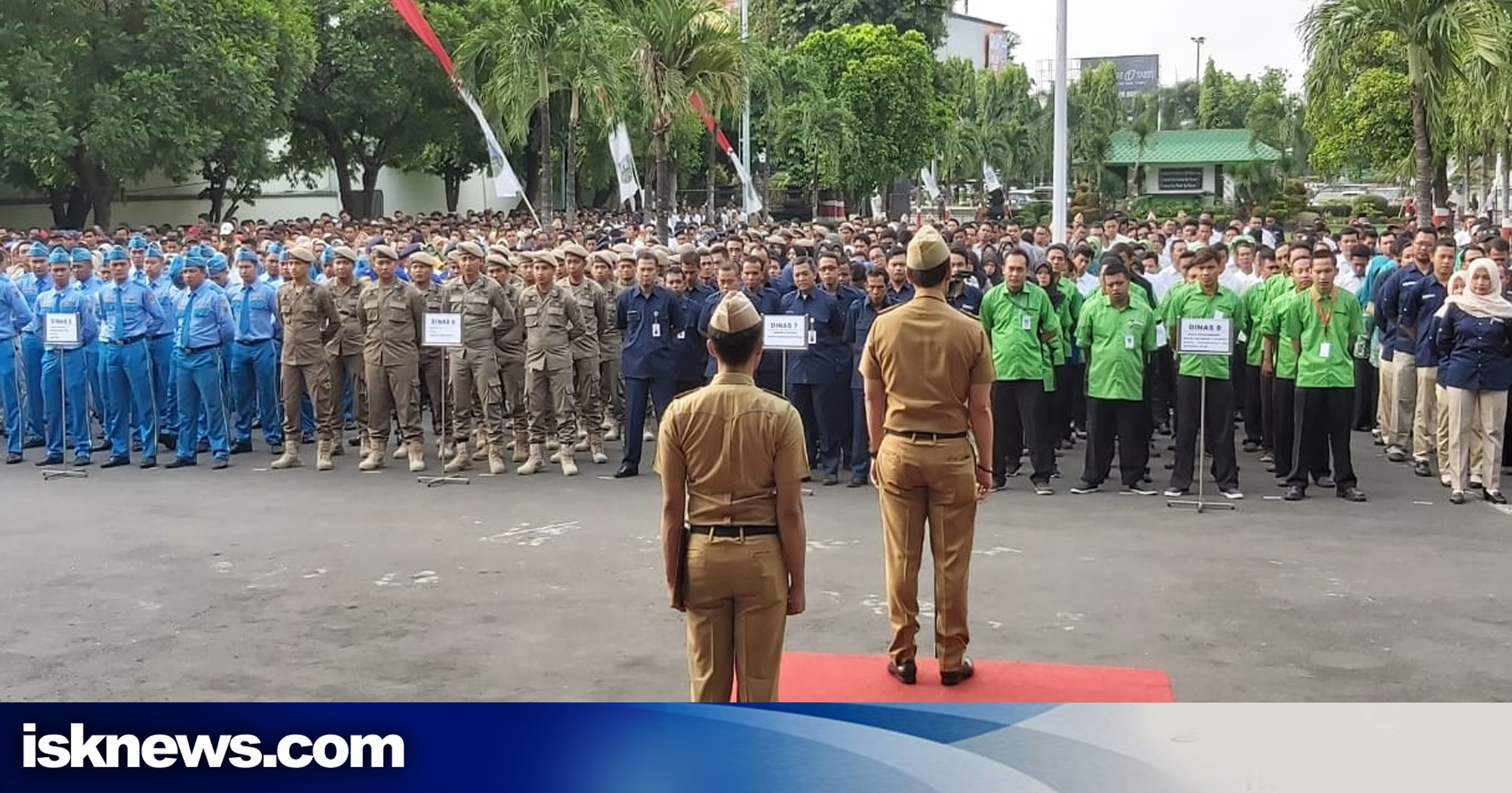 Ribuan tenaga Kontrak dan Outsourcing di lingkungan Pemkab dan BLUD saat apel bersama Plt Bupati Kudus HM Hartopo (Foto: YM)